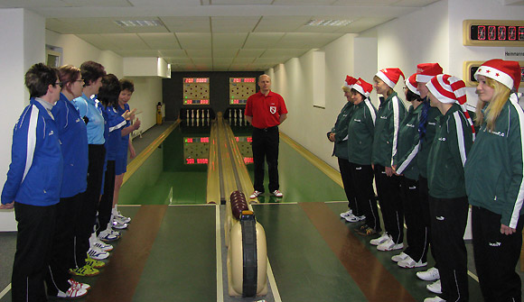 Gastgeberinnen mit 20 Kegel in Führung. Im