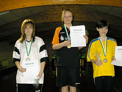 In der weiblichen B-Jugend sicherte sich Sandra Vogel vom SV Neuoelsnitz/E. (Mitte) überlegen den Titel vor Anna Müller (SKV Plauen, links) und Janine Lauckner (KSV Hainichen 92). Foto: Susann Köhler