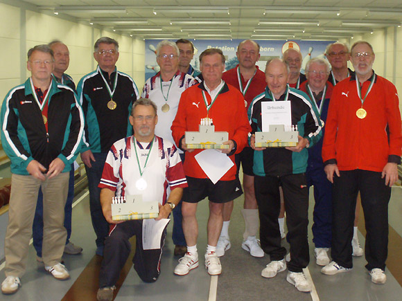 Die drei Siegermannschaften der Bezirksvereinsmannschaftsmeisterschaften 2010 in Weißenborn: TSV 90 Zwickau (1.), TSV Fortschritt Mittweida 1949 (2.) und Chemnitzer SV Siegmar 48 (3.). Foto: W. Wüstling