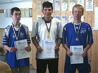 Die Sieger der männlichen A-Jugend lieferten recht starke Leistungen ab. Am Ende siegte Robert Knutti (TSG Sehma / Mitte) vor Hendrik Fiedler (KSV Blau-Weiß Lumpen 1896 Cranzahl / links) und Thomas Nöbel (BSV Ehrenfriedersdorf).