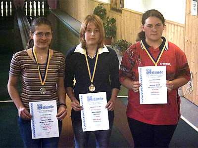 Die Siegerinnen der weiblichen A-Jugend lieferten sich einen richtigen Krimi. Am Ende siegte Susann Adam (TSG Sehma / Mitte) vor Anna Benedict (links) und Kristin Hartling (beide KV Rot-Weiss Neudorf).