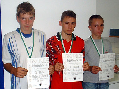 Die Medaillengewinner bei den A-Jugndlichen v.l.n.r.: Robert Knutti (TSG Sehma/Bronze), Ralf Leonhardt (KV Rot-Weiss Neudorf/Gold) und Robin Wolf (KSV Gut Holz Thum/Silber).