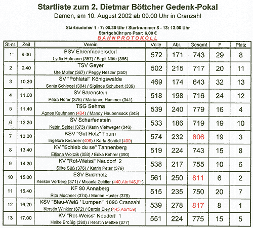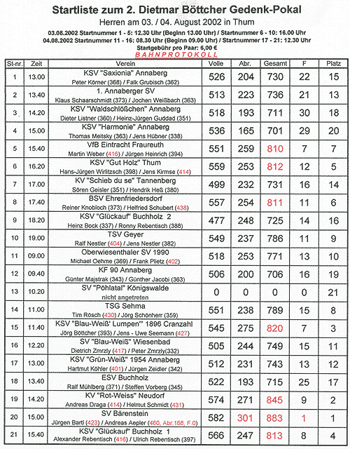Kegel) endete der 2. Dietmar-Böttcher-Gedenk-Pokal.